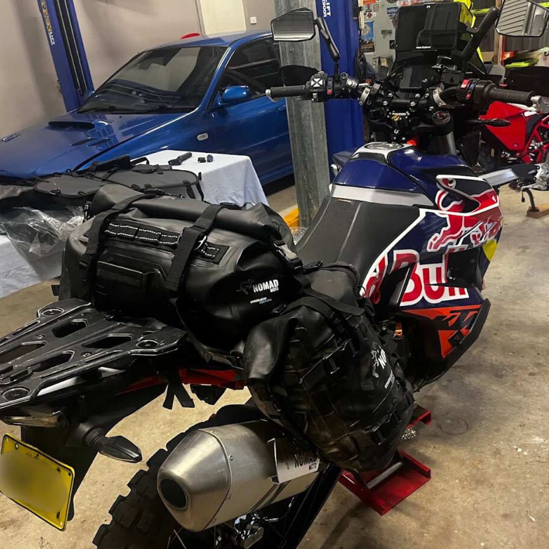 That experience led to the Nomad Moto Exhaust Heat Shield—designed to keep your soft panniers protected from exhaust heat, no matter how tough the ride.